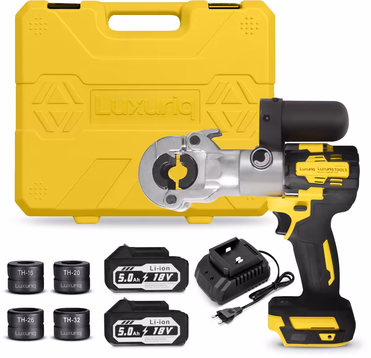 Deze set is standaard uitgerust met TH-profielen (TH16, TH20, TH26, TH32). Daarnaast zijn de Luxuriq persbekken M, U, V ook toepasbaar in deze tang.
