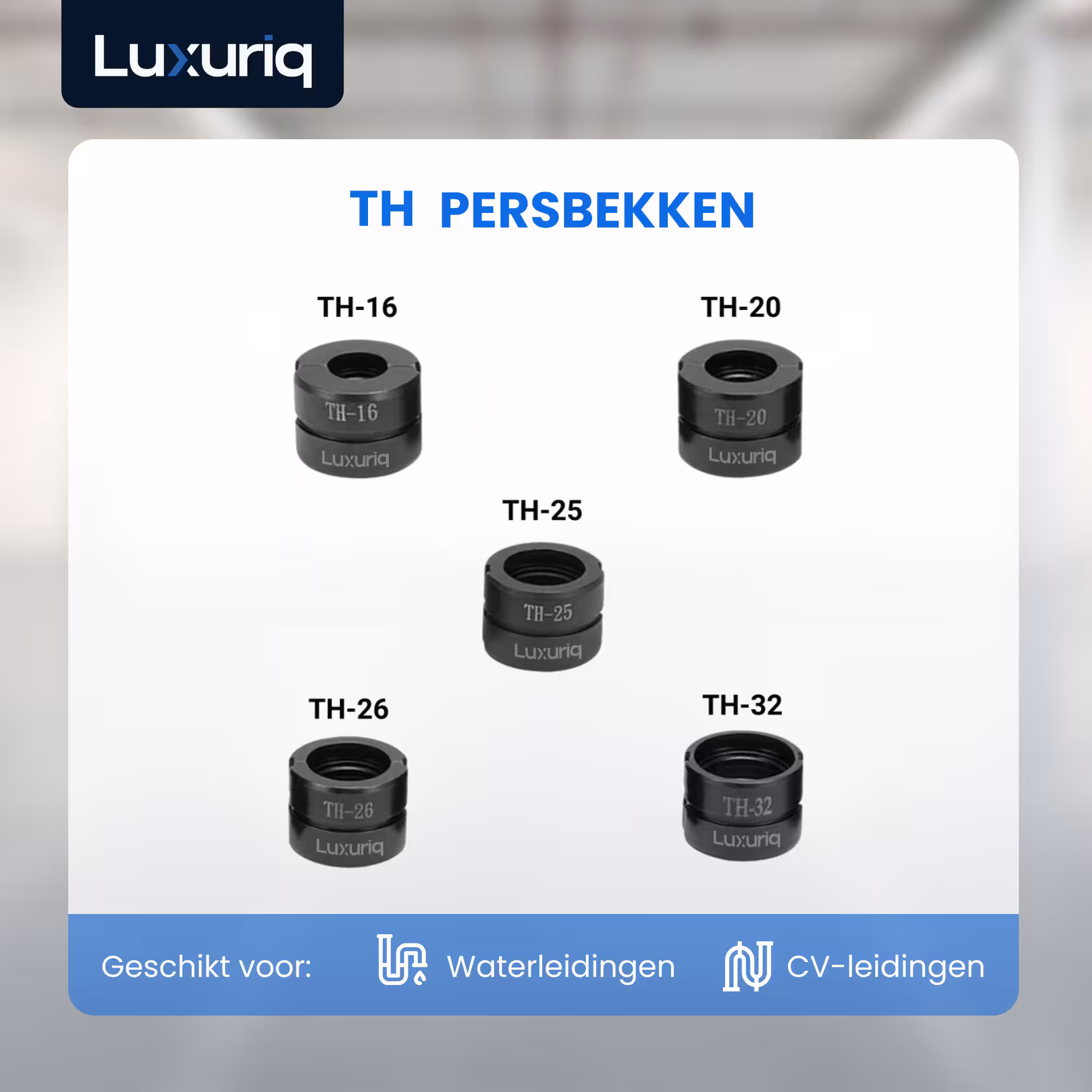- 5x TH-persbekken: TH16, TH20, TH25, TH26, TH32
