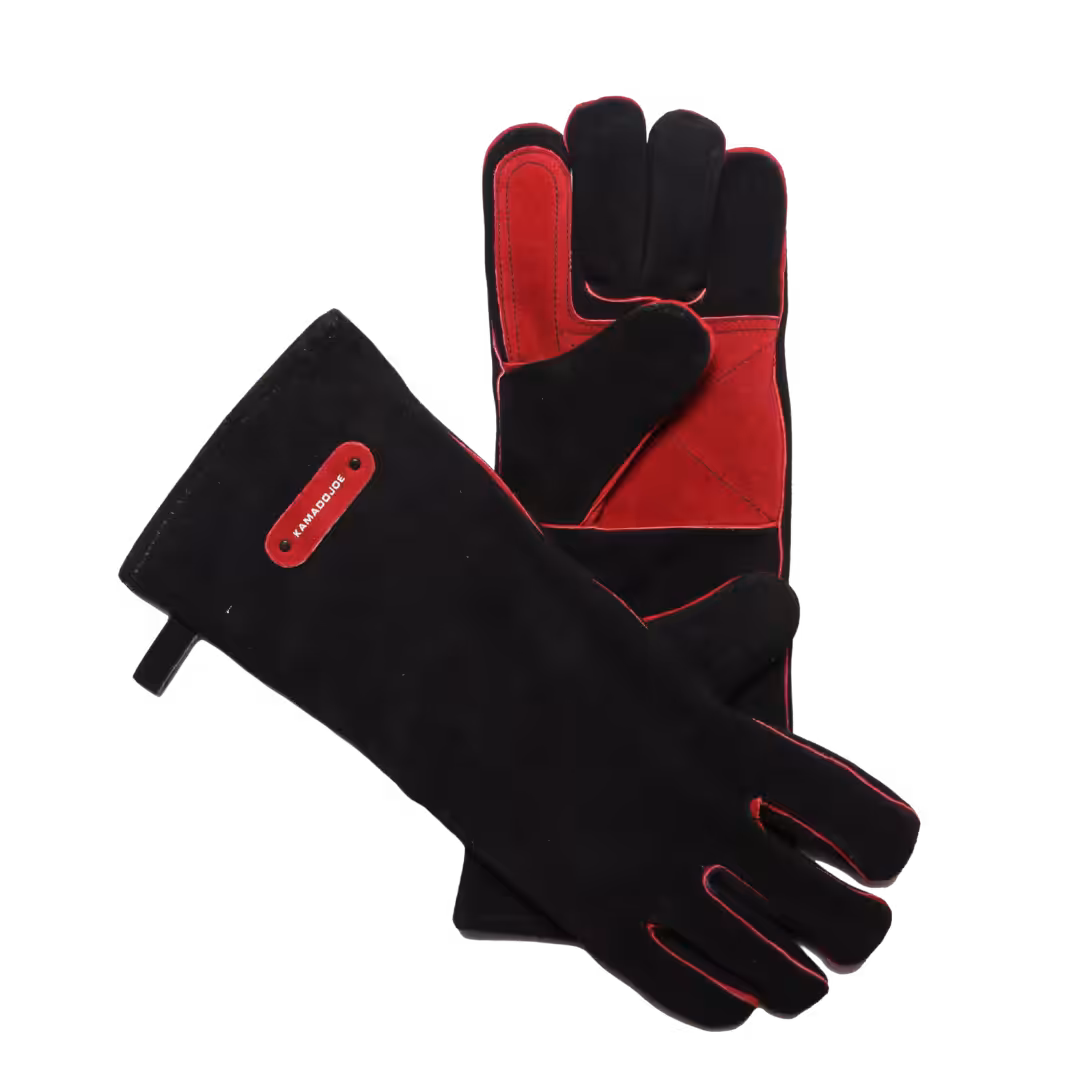 De lederen BBQ-handschoenen zijn gemaakt voor intensief gebruik aan hoge temperaturen. Ze beschermen je handen en onderarmen tegen hitte, vonken en hete roosters. Dankzij het soepele leer heb je toch voldoende grip om accessoires vast te pakken, een gietijzeren pan te verplaatsen of je plate setter uit de kamado te halen. Kortom: veiligheid zonder in te leveren op comfort.