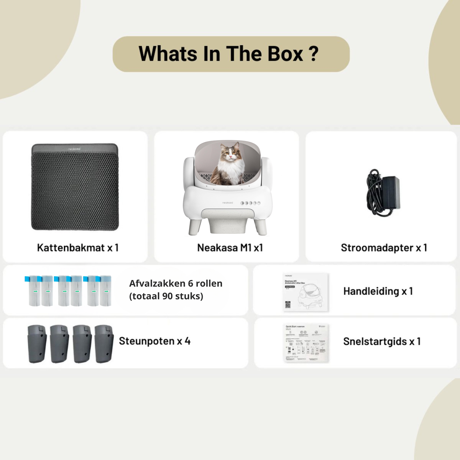 • Inclusief kattenbakmat en 6 rollen afvalzakken – direct gebruiksklaar