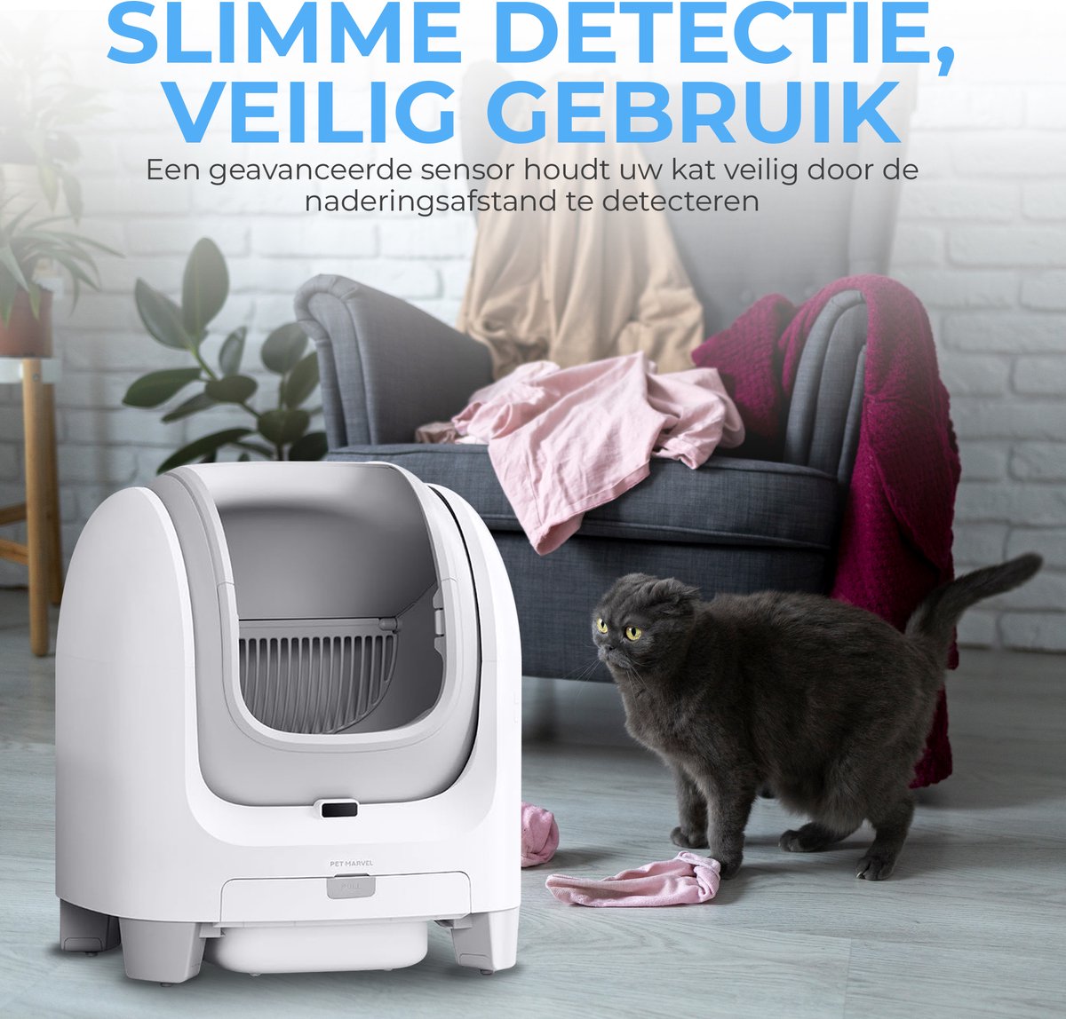 De Pet Marvel C1 is een moderne, zelfreinigende kattenbak die het leven van zowel katten als baasjes een stuk makkelijker maakt. Deze automatische kattenbak combineert technologie, comfort en hygiëne in een strak en compact ontwerp dat in elke woonruimte past. Dankzij het zelfreinigende systeem heb jij geen gedoe meer met handmatig scheppen én geniet je kat altijd van een frisse bak.
