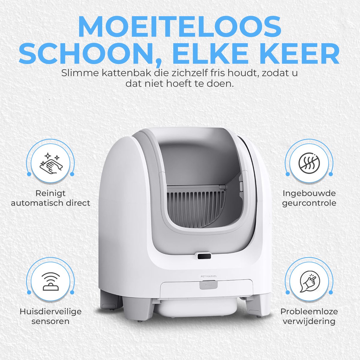 De Pet Marvel C1 zelfreinigende kattenbak is de ideale oplossing voor wie gemak, hygiëne en modern design wil combineren in één slimme kattenverzorgingsoplossing.