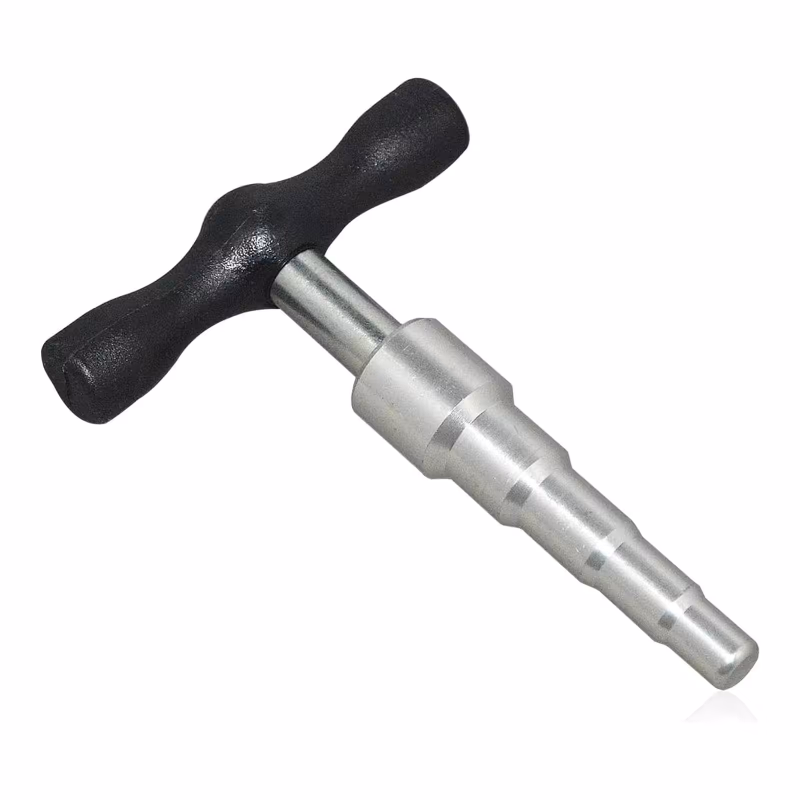 De T-vormige handgreep ligt comfortabel in de hand en biedt uitstekende grip, zelfs bij langdurig gebruik. Dankzij de ergonomische vorm kunt u krachtig en gecontroleerd werken zonder vermoeidheid. De soepele rotatie maakt het kalibreren snel en moeiteloos.