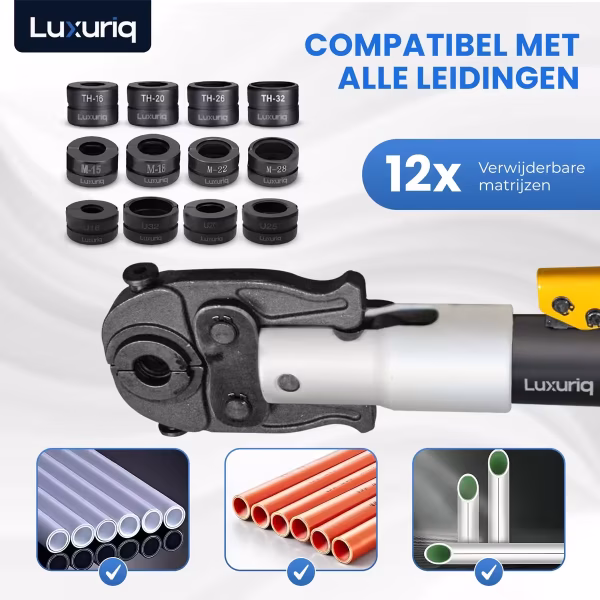 Neem contact met ons op- Voor welke soorten leidingen is de Luxuriq® 3-in-1 Hydraulische Perstangenset geschikt?