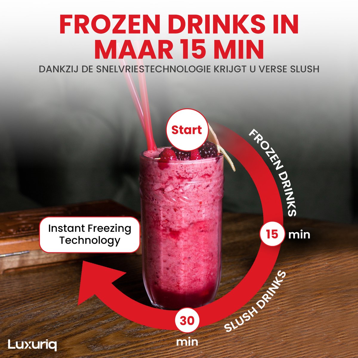 Met de Luxuriq Slushmaker maak je in 15 minuten verfrissende slushies, milkshakes, frozen cocktails en meer. Dankzij 7 automatische programma’s, InstantFreeze-technologie en AutoClean geniet je moeiteloos van ijskoude creaties, snel, stijlvol en gebruiksvriendelijk.