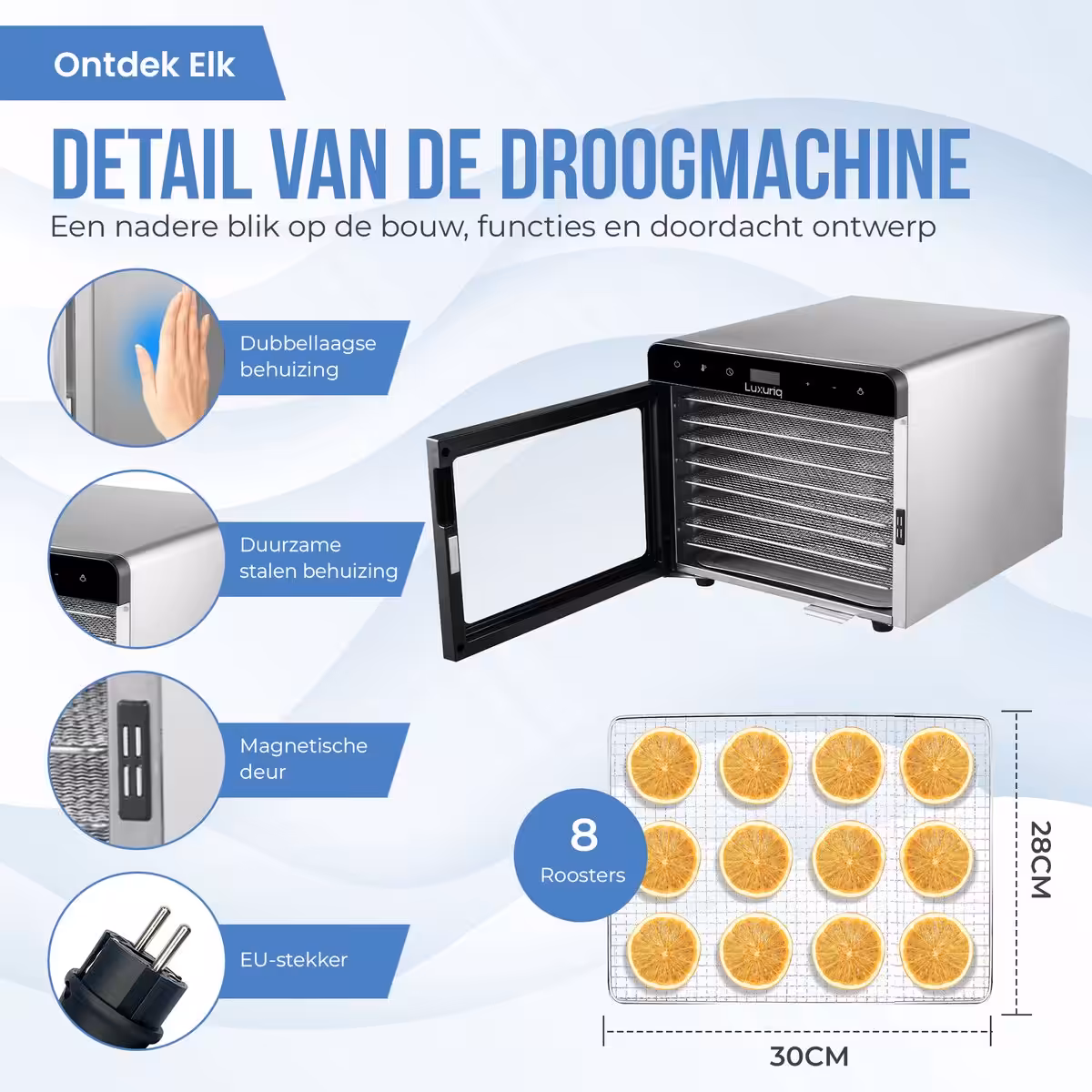 Waarom kiezen voor de Luxuriq Voedseldroger SS-08DC?