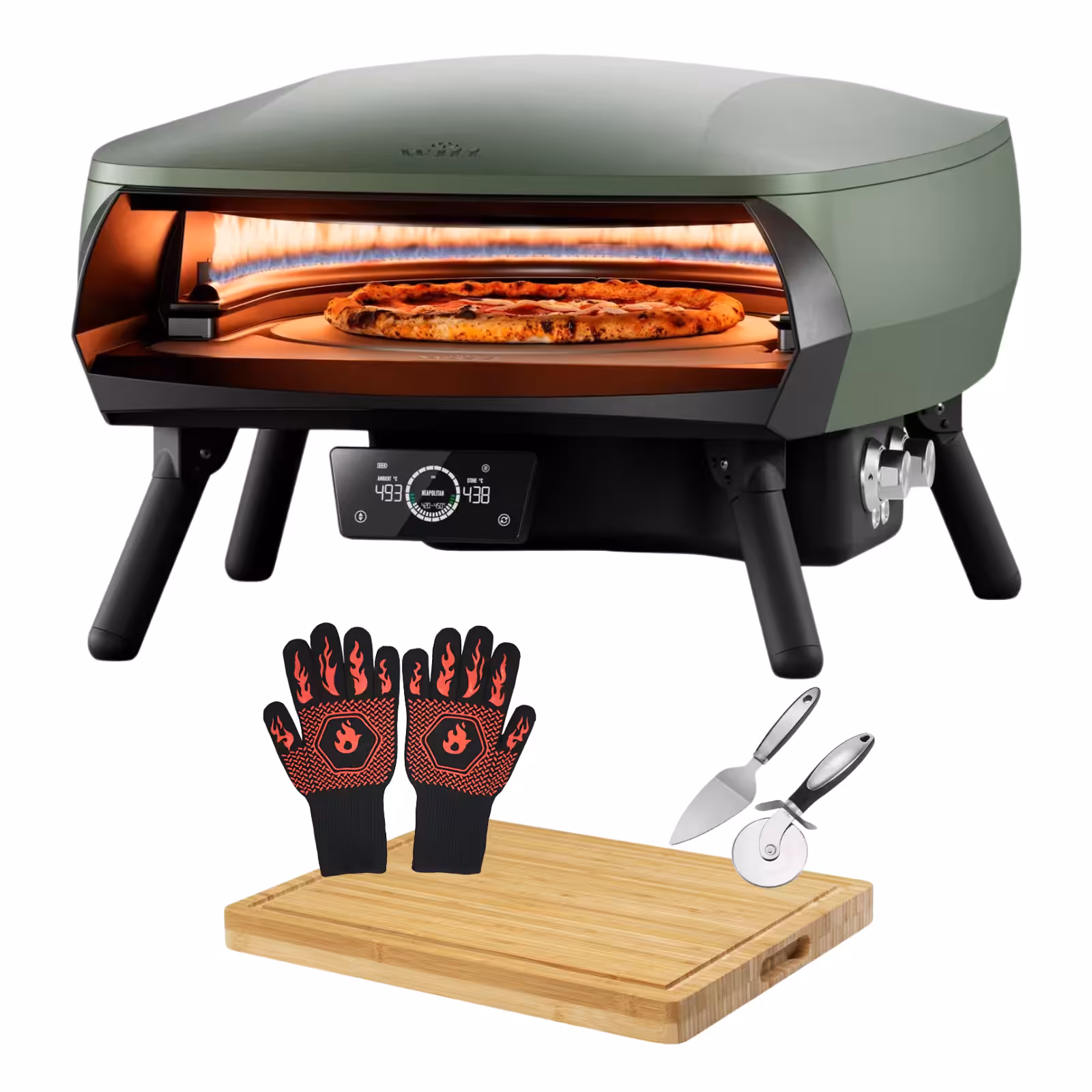 Uniek aan deze oven is de automatisch roterende pizzasteen. Terwijl de pizza bakt, draait de steen langzaam rond, waardoor de hitte gelijkmatig wordt verdeeld. Je hoeft de pizza niet handmatig te draaien en voorkomt verbrande randen of ongelijk gegaarde toppings. Het resultaat: een perfect knapperige bodem, luchtige rand en egaal gesmolten kaas – elke keer opnieuw.